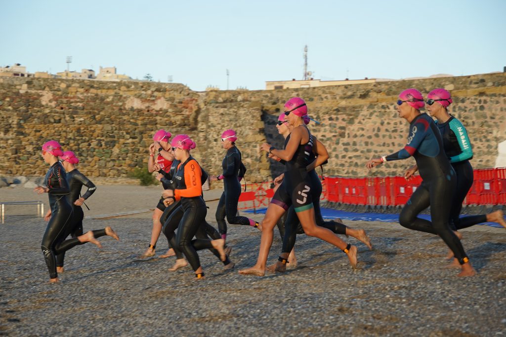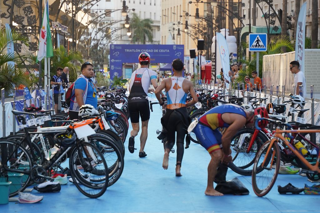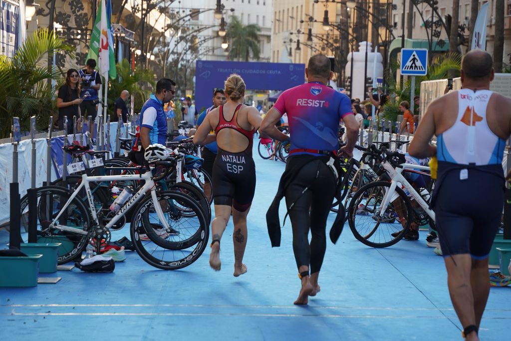 Con 70 triatletas masculinos, 40 femeninos, 70 inscritos en la prueba popular, la prueba ha desembarcado en el centro urbano de Ceuta, que ha llenado las calles este domingo 5 de octubre.