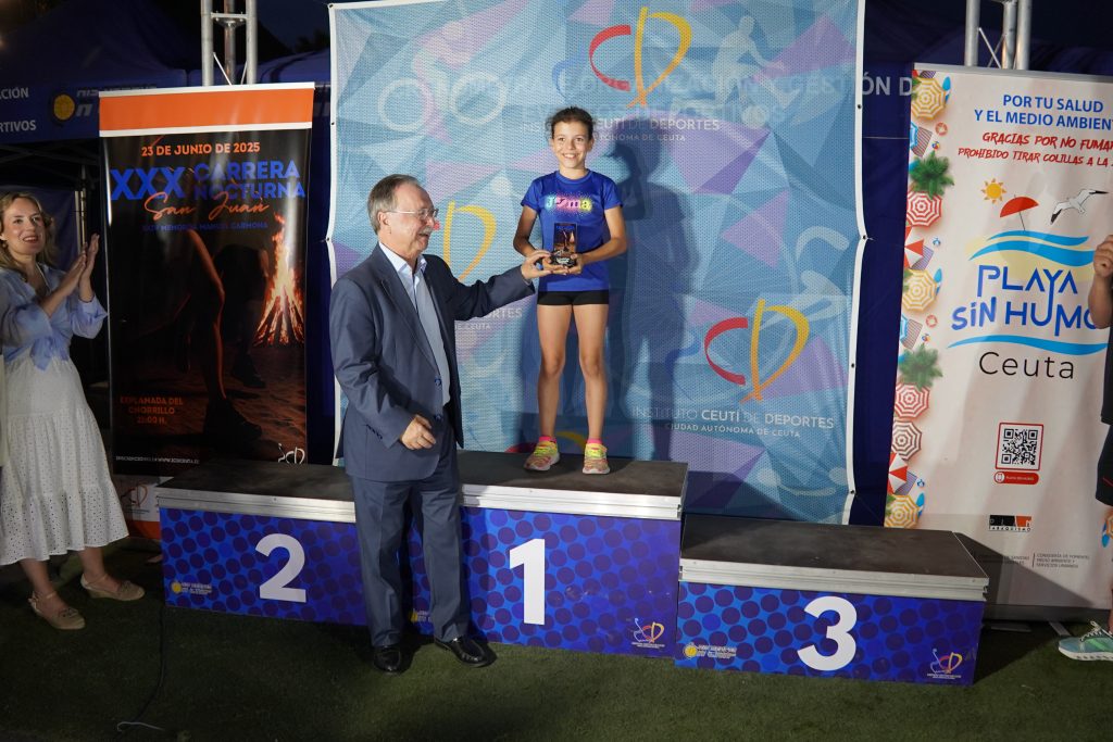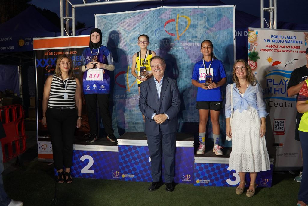 En la categoría masculina, el primero en cruzar la meta ha sido Mohamed Abdeselam ‘Bily’, que ha parado el crono en 11 minutos y 45 segundos, seguido por Ismael Taieb Abdeselam y Álvaro Salguero, que han completado un podio muy disputado entre el segundo y el tercero. En la femenina, el triunfo ha sido para María Romero, que ha marcado un tiempo de 15 minutos 20 segundos, acompañada por Inmaculada Calle y Silvia Blanco.