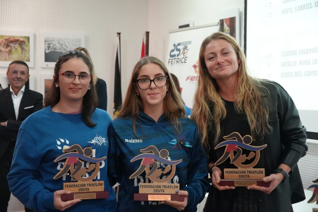Durante el acto se han entregado los premios correspondientes al Ranking FETRICE 2025, reconociendo el esfuerzo y los resultados de los triatletas y clubes ceutíes y a lo largo de la temporada en las distintas categorías: