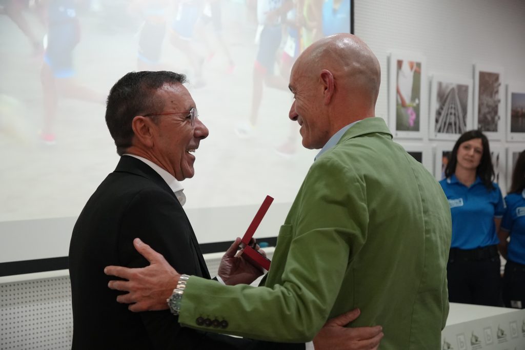 Uno de los momentos más emotivos de la tarde ha sido el reconocimiento a Susana Román, que ha recibido la Insignia de Oro de la Federación como homenaje a su trayectoria deportiva y a su contribución al desarrollo del triatlón en la ciudad, en el marco de este aniversario tan significativo.