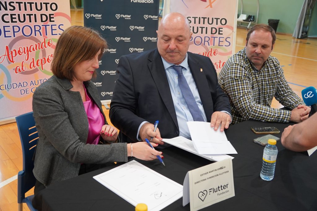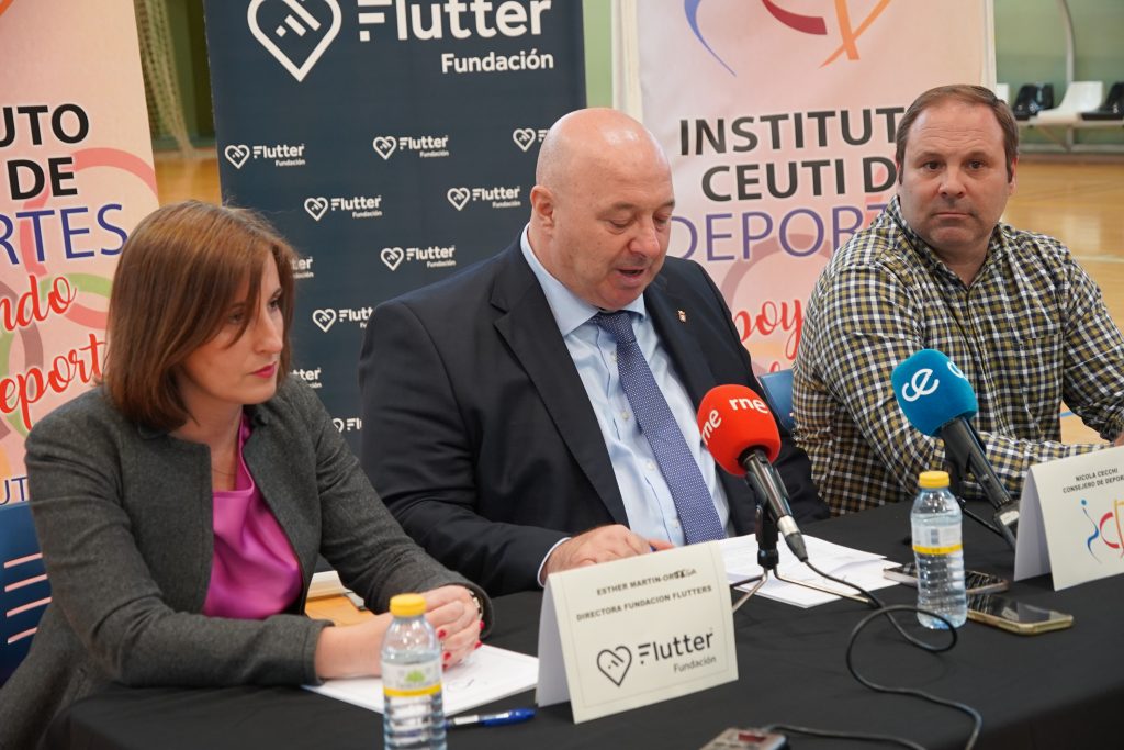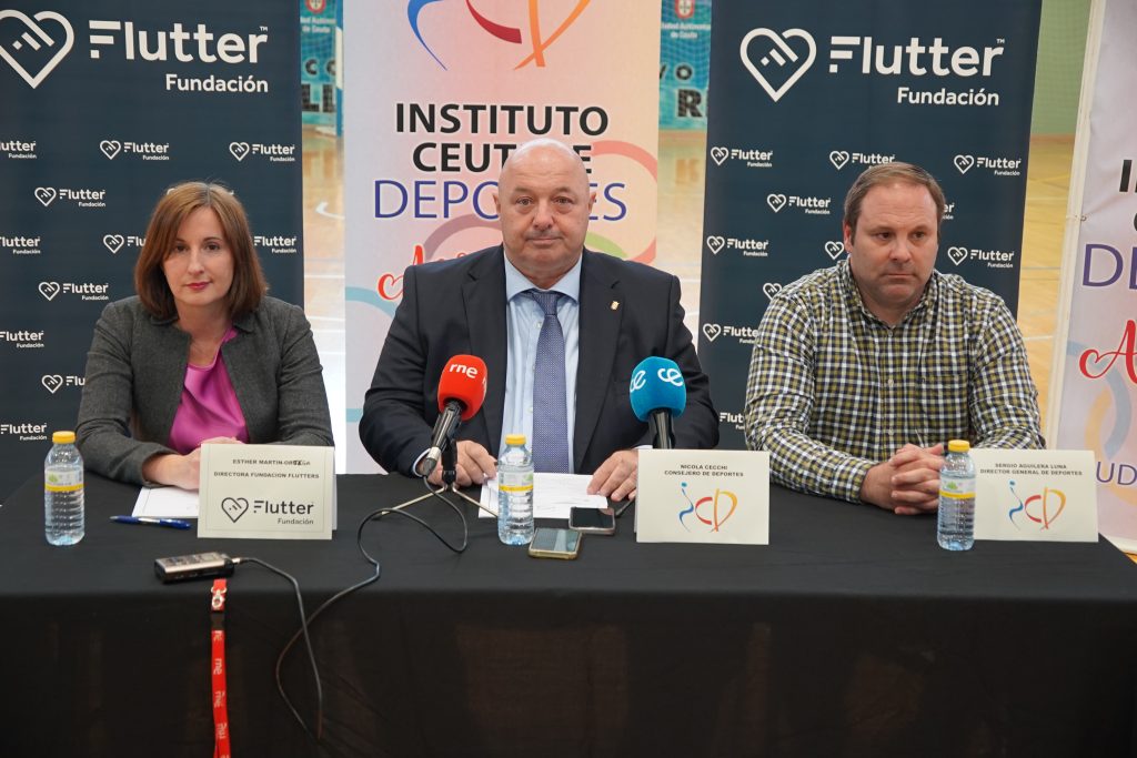 En la rueda de prensa han participado Nicola Cecchi, Consejero de Deportes de la Ciudad Autónoma de Ceuta; Sergio Aguilera, Director General de Deportes; y Esther Martín-Ortega, Directora de la Fundación Flutter.